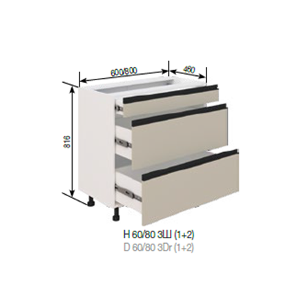 Матеріал виробу: Направляючі повного висування (без дотягу), Корпус та фасад ДСП