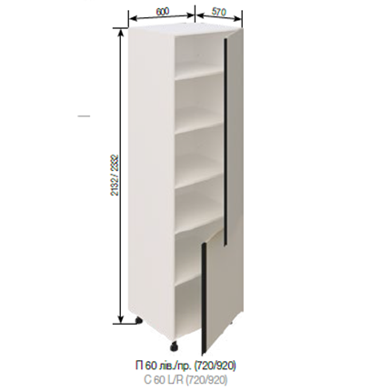 Розмір (ВхШхГ): 2132 х 600 х 570